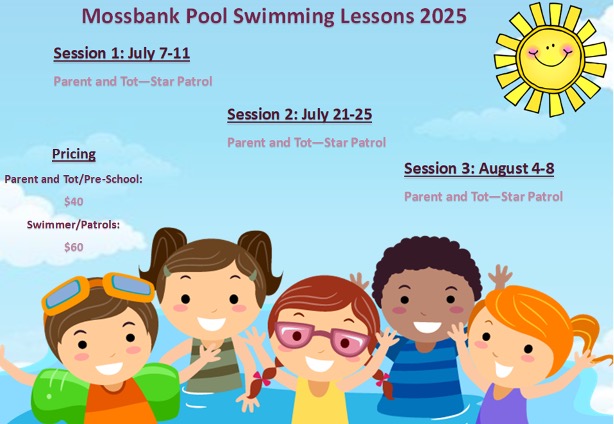 The Mossbank swimming pool is an outdoor, heated pool open July and August offering daily recreational swimming, swimming lessons, and spray park. To request registration for swimming lessons or to book your private pool rental, please call 306-354-2294 or email using the below form. Please provide names, sessions, and the class each child is to be registered in. If you aren’t sure of the class your child is in, you can register for what you think they are in and we can correct it if needed.
